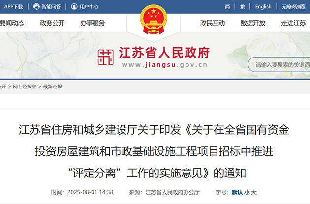 江苏省国有资金投资房屋建筑和市政工程项目招标中推进“评定分离”工作